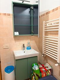 Arredo bagno verde salvia, studiato per un bagno piccolo, dotato di mobile specchio contenitore e luce Fatto da idea design