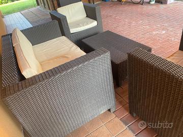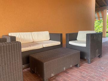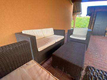 ARREDO PER GIARDINO IN FINTO RATTAN IN CONDIZIONI COME DA FOTO CON CUSCINI COLOR PANNA, VERO AFFARE!!