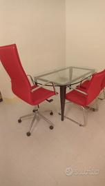Poltrona e sedie rosse.