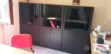 ARREDO PER UFFICIO USATO COMPOSTO DA: SCRIVANIA, CASSETTIERA, SEDIA, 1 MOBILETTO METALLO COLOR MARRONE CON VETRINETTA CON LE SEGUENTI DIMENSIONI: LARGHEZZA CM 8O, ALTEZZA CM 150, PROFONDITÀ CM 40. PREZZO SU RICHIESTA TEL 333 3386179