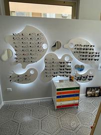 Vendo arredo negozio , sagome forma di pesce retroilluminate, porta occhiali.