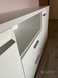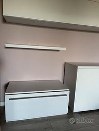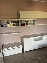 Vendo composizione sala come da foto comprensivo di mobile madìa bianco della stessa linea. Il cassettone grande dov’è posizionata la tv è parte del mobile sala, lo abbiamo solamente diviso per necessità. Mobile sala e madìa perfetti, senza graffi ne segni di usura. Vendo per cambio arredo sala. Il ritiro concordato è a carico dell’acquirente in quanto non ho la possibilità di trasportarlo. Prezzo leggermente trattabile. VENDO SOLO IN BLOCCO UNICO