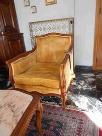 Vendesi, credenza, doppia specchiera, tavolo esagonale con 4 sedie, divano 3 posti e 2 poltrone, tavolino da salotto con marmo. Tutto anni 60, legno massello. Alcuni Segni di usura. Si vende in blocco o separatamente.