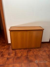 Mobili da soggiorno anni 70/80 in legno color miele. Mobile grande: Lunghezza 345 Profondità 43 Altezza punto più alto 207 Mobile piccolo: Lunghezza 106 Profondità 31 Altezza 74