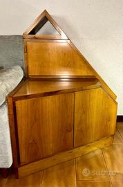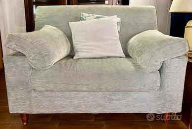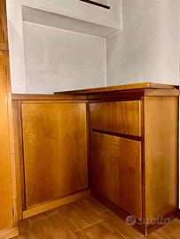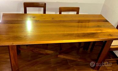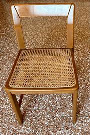 Arredo per salotto in noce massello realizzato da artigiano. Sei sedie in paglia di vienna. Due divani a due posti sfoderabili.