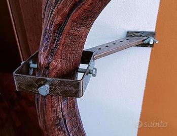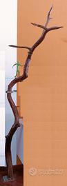 vendo oggetto da arredo realizzato con grande ramo di castagno (altezza 2,65m). La sezione del ramo alla base è di 10/12cm e poggia a pavimento su base in acciaio/legno con simulazione di imbullonatura. Viene semplicemente mantenuto in posizione verticale da staffa in acciaio ancorata a muro con un semplice tassello. Ad un altezza di circa 1,70m è posizionato (rimovibile) un ominide in gesso (armato) di colore verde pastello con grafiche nere che -in equilibrio- tiene "a guinzaglio" il ramo. I predetti sono tutti trattati con vernice trasparente lucida. L'oggetto si sviluppa all'interno di un volume di 50X120X265cm. Causa dimensioni il pezzo non è spedibile. Sto liberando spazio, invito ad osservare altre mie inserzioni.
