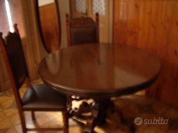 Vendo arredo completo per soggiorno composto da: tavolo rotondo in legno con n.6 sedie abbinate, divano, poltrone, angoliera in legno, 2 tavolini vetrati, scrivania in legno antica.