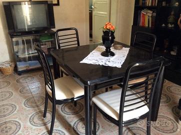 Mobile armadio/ libreria , tavolo con sedie e lampadario in perfette condizioni. Colore nero lucido