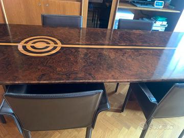 vendo tavolo in massello di radica di noce per prestigiosa sala riunioni o soggiorno, corredato da mobile/vetrinetta uso archivio e mobile basso uso documentazione. tavolo 240 x 90 - mobile basso 240 x 80 vetrina 140 x 145