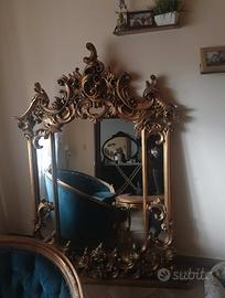 Mobili da arredo soggiorno in stile Barocco. Lavorazione artigianale, rivestiti in foglia d'oro.