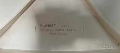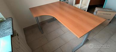 Scrivania 160 L x 120 P x 80 P x 72 H, cassettiera 46 L x 55 P x 55 H, lettino 175 L, 75 H. Sedia Kartell. Lampada a stelo vendibili anche separatamente