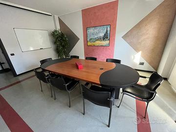 Vendesi blocco completo di arredi eleganti e funzionali provenienti da prestigioso studio legale. Soluzione ideale per professionisti (avvocati, commercialisti, consulenti) che cercano un allestimento di alta rappresentanza, pronto all'uso e dallo stile coerente. L'offerta include: Area Accoglienza e Meeting: Reception: Bancone d’impatto per ricezione clienti Sala Riunioni: Grande tavolo da 8 posti + tavolo rotondo grande per meeting circolari. Area Attesa: Tavolo rotondo piccolo per colloqui informali. Supporti Video: Telo motorizzato per proiettore e lavagna. Uffici e Postazioni: 2 Uffici Completi: Composti da scrivania, armadio dedicato e cassettiera. 1 Piccola scrivania Sedute: Totale di 16 sedie (per ospiti). Archiviazione e Infrastruttura: Mobili contenitori: 5 mobili a due ante spaziosi. Vetrina di pregio: Mobile a vetrina con allungo basso a due ante. Tecnologia: 1 Armadio Rack per gestione server e rete dati. Complementi e Decorazioni: 14 Quadri d'arredo coordinati. 4 Appendiabiti 1 Pianta finta ornamentale di alta qualità. Mobile per bagno coordinato. Disponibilità di vendita frazionata! Ritiro e trasporto a cura dell'acquirente