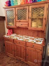 Arredo taverna rustico e tradizionale in larice massello verniciato semilucido. Imponente composizione anni '70, originale e artigianale con leggeri segni del tempo di poco conto. Include: