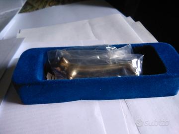 A) gadget pubblicitario "tuttintavola" Caffe Suerte Pienaroma anni '90. N.5 poggia-posate zoomorfe in silver plate, ancora nuove, nella propria confezione originale, mai usate. Della serie completa ne manca solo uno, il leprotto, come da cerchiatura nella foto. Ogni pezzo è marchiato sul sottopancia. Ideali per la preparazione della tavola in occasioni importanti, ma anche come simpatici soprammobili o fermacarte o come oggetti pubblicitari da collezione vintage. B) porta-tovaglioli in vetro artistico secondo la tradizione di Murano, molto bello, mai usato, ancora nuovo; potrebbe essere usato anche in ufficio come porta buste, lettere, documenti, ecc. come illustrato nell'ultima foto. Posso valutare offerte. Se possibile, preferibile consegna a mano. Contattare per ulteriori informazioni o dettagli.