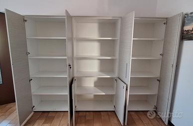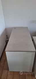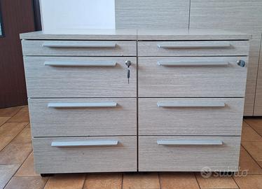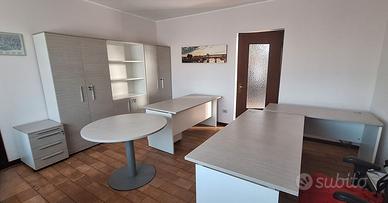 Vendo arredo ufficio completo Colombini Office, composto da: 1 scrivania 180x60x75 h 1 scrivania 160x80x75 h 1 scrivania 160x60x75 h 1 tavolo rotondo diametro 100x75 h 2 cassettiere 42x54x60 h 1 armadio a 3 moduli 90x44 prof. (+2 cm con anta) x 197 h 1 mobile a 2 ante 90x81x45 h Colore: bianco e legno chiaro. Mobili usati in buone condizioni generali, con normali segni d’uso. Una delle cassettiere presenta un difetto di chiusura: 2 cassetti su 4 non si chiudono correttamente. Prezzo trattabile in considerazione di questo difetto. Vendita in blocco. Disponibile per visione su appuntamento. Possibilità di inviare altre foto su richiesta. Ritiro a mano, smontaggio e trasporto a carico dell’acquirente.