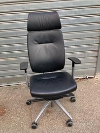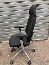 1 poltrona alta ergonomica in vera pelle, con base in alluminio pressofuso lucido;