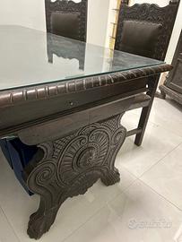 Set di mobili in legno epoca rinascimento: una scrivania 2 sedie, una libreria . € 300 oltre spese di spedizione a carico dell’acquirente. Siamo a Napoli.