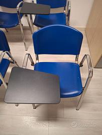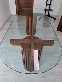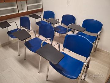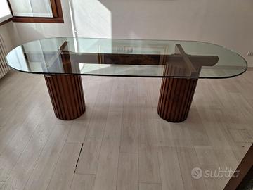 Vendo Arredo Ufficio così composto: - tavolo artigianale in cristallo e legno rettangolare con estremità arrotondate cm 240*90 h 78 Euro 400 - 9 sedie con ribalta in metallo e plastica Euro 20 ciascuna