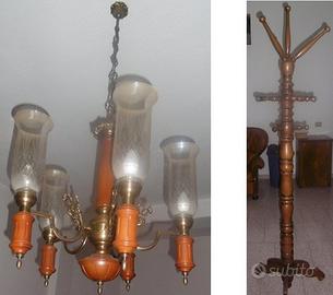 Lotto di arredi composto da: soggiorno in stile spagnolo con sei sedie, un grande tavolo da otto posti, un mobile libreria, un mobile con specchiera, un divano in pelle a tre posti in inglese ‘800 più due poltrone analoghe, un lampadario in legno e metallo ottonato in stile inglese ‘800, un tavolino da salotto in legno massello, un capiente appendi abiti in legno massello in stile classico ‘800. Vendibile anche parzialmente. Ritiro a Cagliari. Carico e trasporto a cura dell’acquirente.