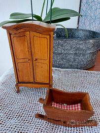 Vendo mobili arredo vintage Casa delle Bambole in legno di alta qualità. Antine e cassettini che si aprono con manigliette in ottone. Realizzati a mano. Tutto in ottime condizioni