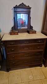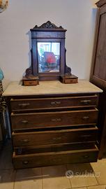 Set composto da armadio cassettiera con specchiera e due comodini con top in marmo. Bellissimi arredi di arte povera contadina.