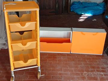 SVENDIAMO arredi e attrezzature per salone da parrucchiere in perfette condizioni generali. MOBILE ESPOSITORE a doppia faccia con cassettone porta asciugamani sportelli centrali con cassetto e vari scomparti più mensole in legno. misure: H200x250 cm / prezzo euro 100. SPECCHI con cornice molto decorativi su vetro stampato di grande dimensioni con possibilità di abbinare delle mensole in vetro spesso antinfortunistico. misure Specchio: 100x80 / prezzo 70. cadauno. misure mensole; 80x25 / prezzo 20. ASCIUGACAPELLI Climazon Track ad infrarossi a quattro bracci da parete con braccio estensibile in perfette condizioni generali..... prezzo euro 100. Gli articoli sono visibili a Cagliari.