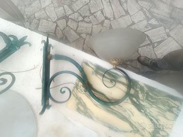 4 Applique in ferro battuto massiccio dimensioni cm 44,50 (h) x cm. 49 (profondità) con piatto alabastro di diametro 30 cm.;