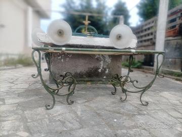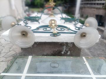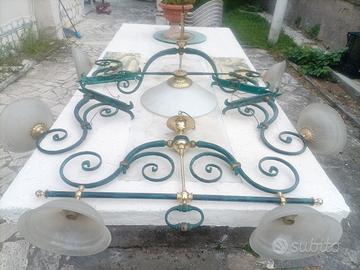 1 lampadario in ferro battuto di dimensioni cm. 60 (h) x cm. 78 (lunghezza) con un piatto grande centrale di diametro cm.50;