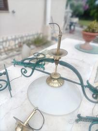 1 lampadario in ferro battuto di dimensioni cm. 77 (h compreso gancio) x cm. 109 (lunghezza) con 2 piatti in alabastro di diametro 30 cm.
