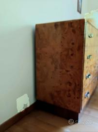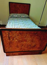 Originale anni '30 in radica di betulla di eccezionale fattura e conservazione, la camera da letto qui proposta è completa di tutti i suoi elementi.