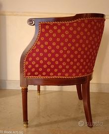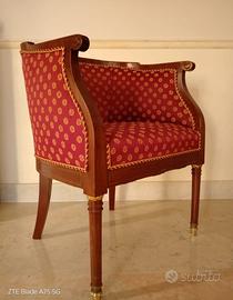 Una comodissima ed elegante poltroncina Art Decò da conversazione o da lettura, realizzata con grande raffinatezza di esecuzione e disegno in legno scolpito e imbottitura. Il broccato con impuntura è stato fatto rinnovare completamente da pochi anni. La poltroncina non è mai stata utilizzata. Per la sua eleganza ed essenzialità è ideale per ogni ambiente e per tutti gli stili. E’ solida, con trascurabili segni del tempo, come da foto.