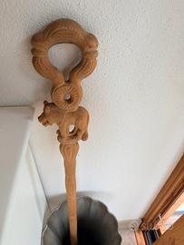 Arte africana. Scettro proveniente dal Kenya in legno intagliato con decorazioni tribali e leone