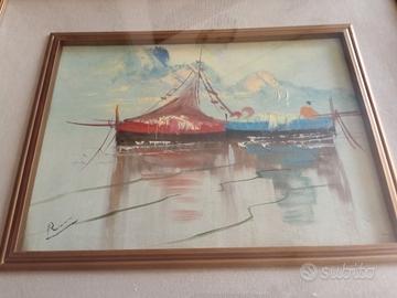 Quadro con dipinto scena marina, SEMBRA un dipinto olio su tela, caratterizzato da pennellate evidenti e uno stile che potrebbe richiamare l'arte moderna o contemporanea, con un'interpretazione astratta o semi-astratta del soggetto marino, dimensioni 59x48cm circa, da segnalare 3 imperfezioni/sbecchi sulla cornice (vedi ultime foto),. ho anche altri annunci,.