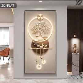 Arte murale astratta moderna 2D, pittura su tela con albero della vita dorato senza cornice, misura 31.49 x 159.99 cm o 80 x 160 cm. Questa tela è ideale per l'arredamento del soggiorno e può anche migliorare l'estetica delle camere da letto.