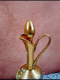 Elegante caraffa realizzata in vetro dorato con decorazioni floreali dipinte a mano.