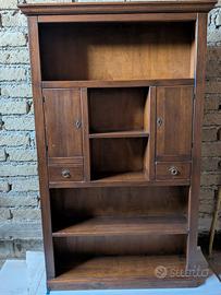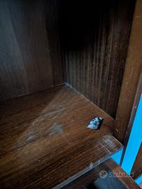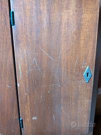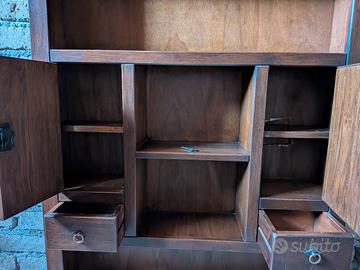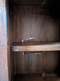 libreria\ mobile d'arredo in legno d'arte povera. legno massiccio. presenta qualche graffio nello sportello sinistro e all'interno presenta un buco e una crepa riparata all'interno del mobile