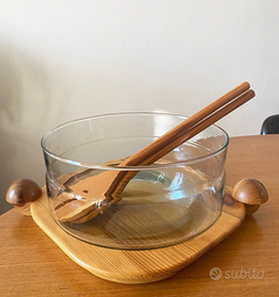 Rara insalatiera ARTEK (Alvar Aalto) in legno e vetro completa di sotto-ciotola e posate per servire. Ottime condizioni, mai usata.
