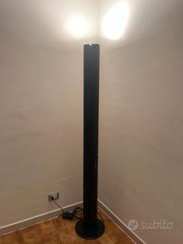 Lampada da terra Artemide Megaron, pezzo storico del design italiano. La struttura in alluminio nero si presenta in buone condizioni estetiche, pur mostrando alcuni graffi lievi. Perfettamente funzionante con lampadina alogena originale per una calda luce indiretta. Il dimmer per la regolazione è efficiente (manca solo il copri-levetta in plastica, ma si aziona senza problemi). Marchio di autenticità presente. Un classico intramontabile per collezionisti. Colore: nero; Materiale: alluminio pressofuso verniciato.