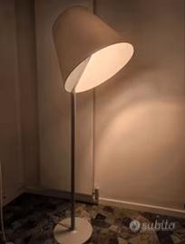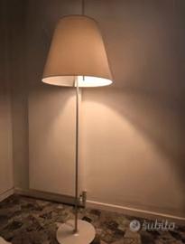 Colore struttura: argento Paralume di raso colore argento Designer: Adrien Gardère Dimensioni: Ø35 x H. 174/217 cm - base Ø35 cm Materiali: tecnopolimero, raso, alluminio, zama Sorgente luminosa: LED DIM 2x21W (E27) Attacco: E27 Dimmerabile: si Interruttore: dimmer