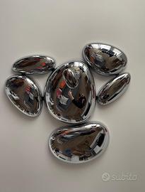 Vendo iconico lampadario/plafoniera Artemide Skydro, design originale di Ross Lovegrove. Un pezzo d'arredamento scultoreo che trasforma il soffitto in una superficie fluida e riflettente. La lampada è composta da una serie di "ciottoli" in ABS stampato con finitura cromata lucida, che riflettono la luce proveniente dal corpo illuminante sospeso (incluso), creando un’atmosfera magica e ricercata. • Designer: Ross Lovegrove • Produttore: Artemide (Made in Italy) • Materiali: Acciaio verniciato, ABS cromato, alluminio pressofuso. • Dimensioni: circa 142 x 136 cm. • Condizioni: Ottime, perfettamente lucido e funzionante. • Modello: Alogeno (attacco R7s), con sorgente luminosa integrata che proietta la luce verso i ciottoli (luce indiretta). Ideale per ampi saloni, uffici di rappresentanza o loft moderni. • Disponibile per il ritiro a mano zona Milano Sud. • Non presente scatola originale. • Prezzo trattabile, per maggiori info contattare in privato, solo su Subito, no mail/whatsapp.