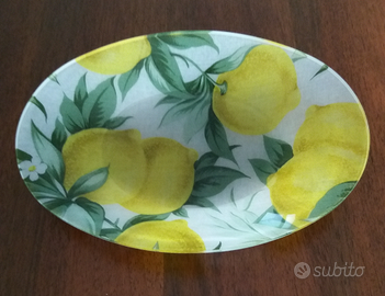 Vendo tovaglia in cotone plastificata per tavolo da 6 persone + 4 cuscini per sedie + 1 portapane e 1 portafrutta, il tutto coordinato con motivi limoni.