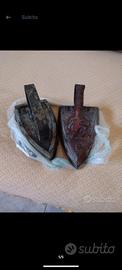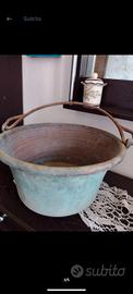 Vecchi articoli da collezione: -antica bilancia stadera in ferro, completa; -due ferri da stiro in ferro con appoggia -ferro; -grande pentolone in rame da oltre 5 kg. Prima periferia di Cavarzere.
