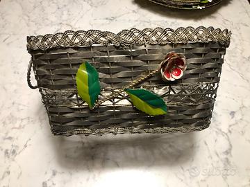 Vendo articoli decorativi per la casa vintage in ferro intrecciato. L'annuncio comprende: portaoliera, portavasetti, 4 piatti decorati, 1 cestino decorato e 1 cestino rotondo. Condizioni perfette. Disponibile la spedizione.