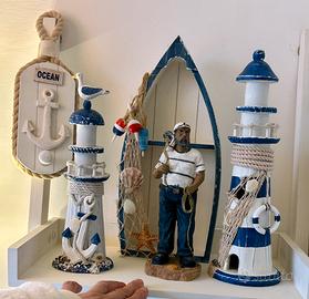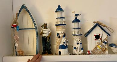 n. 14 Articoli marini; Vendo anche separatamente, acquistando tutto, faccio lo sconto. Torre alto 10 € Torre basso 10 € Marinaio 10 € Barca 10 € Attaccapanni 10 € Gabbia per uccelli 10 €