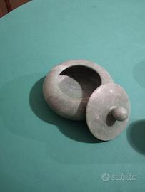 Complementi d'arredo per bagno,porta sapone,porta spazzolini e contenitore per articoli vari in marmo verde. Sono integri e vanno solo rilucidati