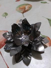 3- porta candele decorativo a forma di fiore con petali in metallo lucido