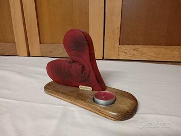 Cuore porta candele in legno interamente fatto a mano. Perfetto per un regalo.