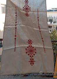 Cedo 8 pezzi in blocco di artigianato tessile della Romania,composto da 1 copritavolo quadrato 105x105 colore bianco-celeste,vari centrotavola con colori prevalenti rosso ,nero ,bianco avorio con dimensioni diverse tra loro ,una asciuga volto (?) bianca ben ricamata in rosso ,che potrebbe fungere da tendina .Ha dimensioni 90x46 circa ,buon materiale liscio quasi come seta . Peso circa 500 grammi . Possibile spedizione, come pacco Delivery Standard ben confezionato a soli 11€, un spedizioniere a meno con tracciabilità,non lo conosco . Meglio una consegna a mano a Pisa ,dove vivo ,con casa mia facilmente raggiungibile e parcheggio di fronte al portone . Per altri dettagli,mi si può contattare in qualsiasi momento.