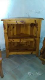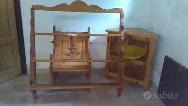 Poltrona, angoliera, cassapanca, piattaia: legno rovere massello, artigianato trentino su disegno del committente, pezzi unici. In ottimo stato.