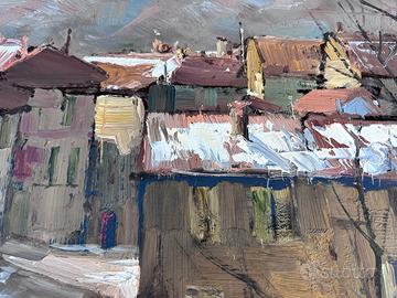 Quadro ad olio 60x 80 su faesite , piu cornice di Arturo Bonanomi . Paedaggio di Calolziocorte nello specifico dellla frazione di Lorentino . Posso spedire ma senza il vetro e la cornice al costo di 15 euro con corriere espresso Bartolini